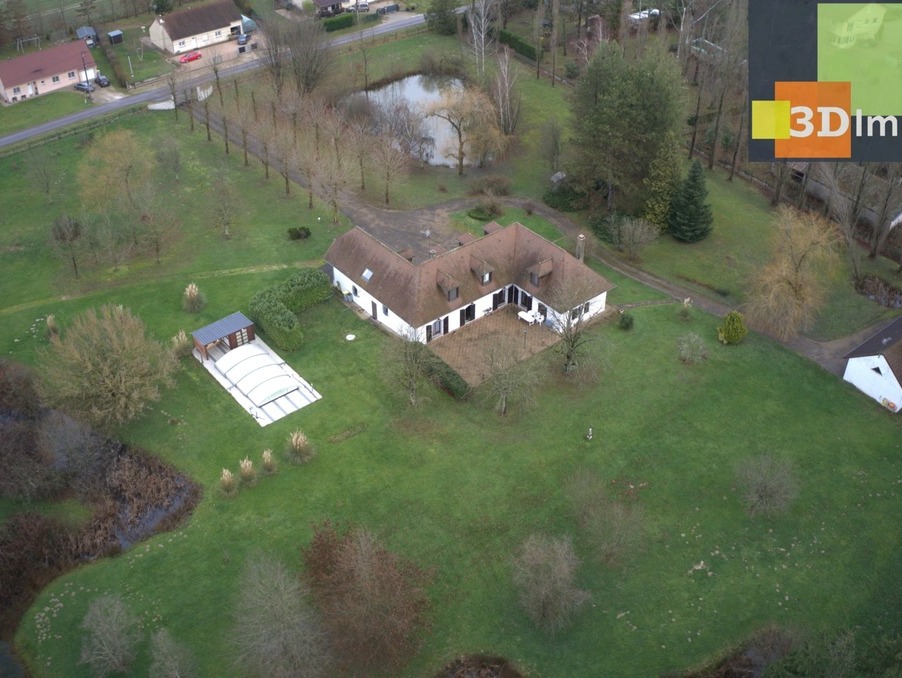 Cette propriété est magnifique avec une grande entrée bordée de platanes, un bel étang de 600m², le terrain est paysagé avec gout , 1 belle piscine récente (coque) 8 x 4 avec dôme.